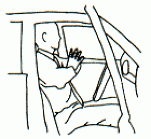 ...............ผู้ขับขี่ควรนั่งให้เต็มก้น หลังชิดพนักพิง หลังตรง ค้อมหัวลงเล็กน้อยเพื่อเก็บคาง และปรับระดับเบาะนั่งให้ใกล้ที่เท้าเหยียบ หรือคันเร่ง โดยให้เข่างอพอประมาณพร้อมคาดเข็ดขัดนิรภัย (Safety belt)